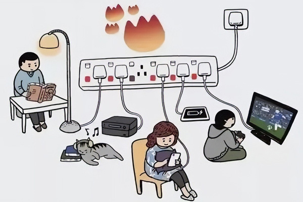 3、使用合格接線板,私拉亂接埋隱患。